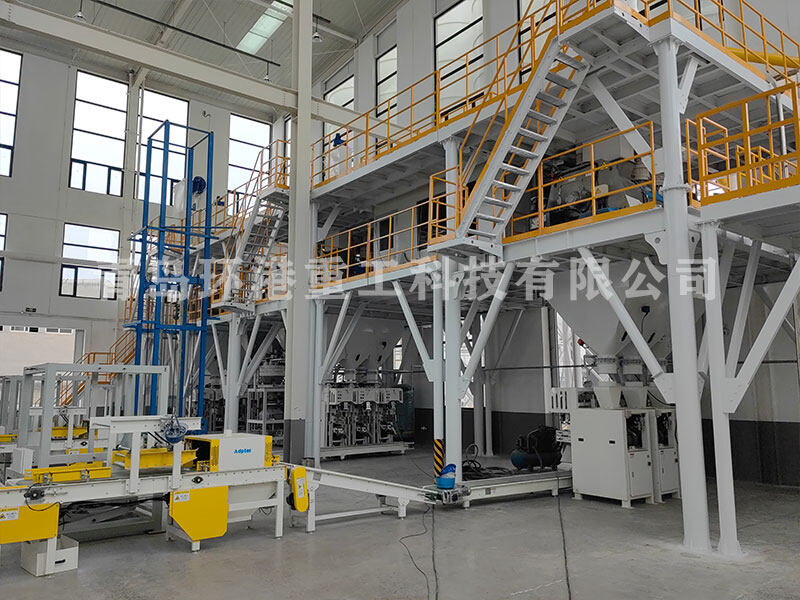 全自動膩子粉生產線是即全自動膩子粉生產設備。主要由喂料機,主混機,儲料倉,自動稱量包裝機等組成。