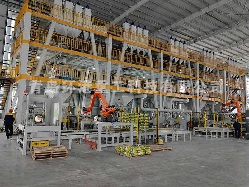 一、自動(dòng)化程度高:通過總控系統(tǒng),所有原料(包含添加劑)自動(dòng)計(jì)量、自動(dòng)輸送、自動(dòng)混合、自動(dòng)包裝、自動(dòng)輸送、自動(dòng)碼垛成型,整個(gè)生產(chǎn)過程沒有人工參與,大大降低人工成本。