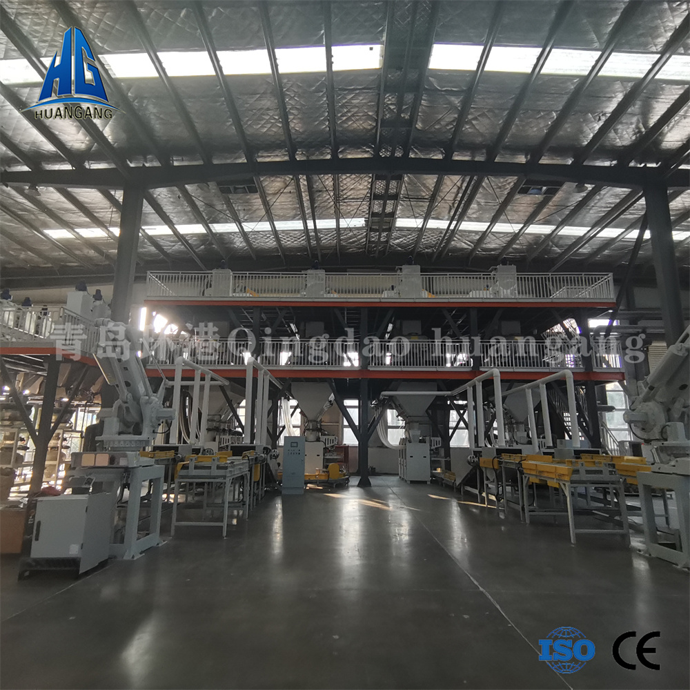 這是一套年產(chǎn)10-30萬(wàn)噸的全自動(dòng)環(huán)保膩?zhàn)臃鄢商自O(shè)備。通過(guò)調(diào)配原料的比例不同可生產(chǎn)內(nèi)墻膩?zhàn)印⑼鈮δ佔(zhàn)?、普通膩?zhàn)?、鏡面膩?zhàn)?、石膏膩?zhàn)拥榷喾N類膩?zhàn)臃郛a(chǎn)品。每小時(shí)根據(jù)所選型號(hào)不同,可生產(chǎn)10~30噸產(chǎn)品,生產(chǎn)線主樓采用塔式結(jié)構(gòu),粉料倉(cāng)安裝在主樓頂部,外加劑系統(tǒng)采用獨(dú)立平臺(tái)計(jì)量泵送。骨料自上而下經(jīng)過(guò)計(jì)量層、混合機(jī)層、成品倉(cāng)、包裝機(jī)、碼垛線。根據(jù)膩?zhàn)臃鄣呐浞揭?,可通過(guò)電腦計(jì)量精確配料后,經(jīng)過(guò)混合主機(jī)攪拌,即時(shí)生產(chǎn)出需要的膩?zhàn)臃郛a(chǎn)品。全過(guò)程采用智能自動(dòng)化操作模式,減少人力投入