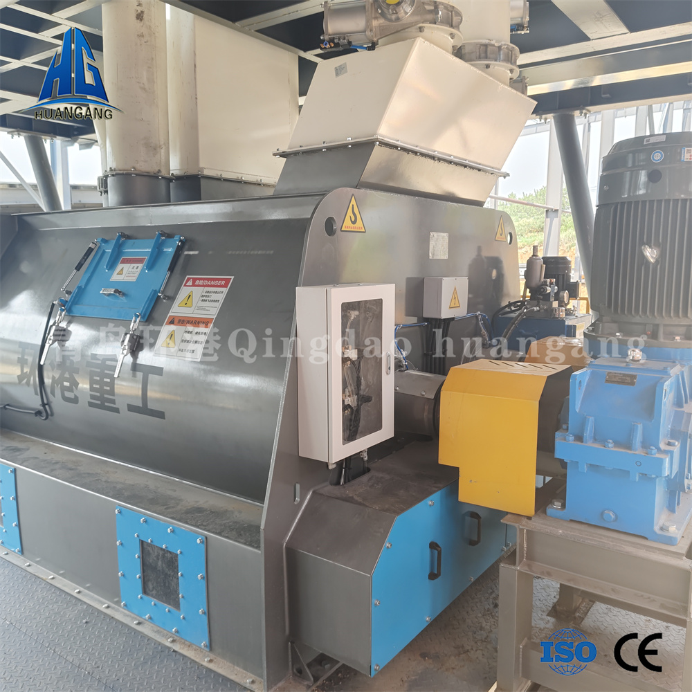 雙軸無重力混合機最大容積可達(dá)4000-8000L,雙軸轉(zhuǎn)速每分鐘55轉(zhuǎn),相比于單軸混合機攪拌容積比較大,適合更大產(chǎn)量的散裝物料生產(chǎn),能在180秒左右把計量好的砂子,水泥,石膏、粉煤灰、重鈣、灰鈣,外加劑等原材料充分翻合均勻,形成達(dá)到規(guī)定強度的成品物料,還使用了獨特的液壓開門結(jié)構(gòu),能使物料在10秒內(nèi)卸料完成,出料殘余少,并且我們的混合機出料口設(shè)有分料器,可根據(jù)需要控制成品物料是送往包裝機進(jìn)行袋裝或經(jīng)過干粉送料螺旋送到散裝頭進(jìn)行散裝。