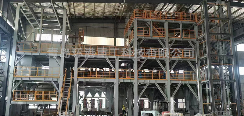 該生產(chǎn)線由儲料系統(tǒng)、輸送系統(tǒng)、稱重配料系統(tǒng)、混合系統(tǒng)、成品儲存系統(tǒng)、包裝系統(tǒng)、除塵系統(tǒng)和電控操作系統(tǒng)等組合而成。在秉承傳統(tǒng)干粉混合生產(chǎn)線運行穩(wěn)定、計量精確、操控簡易的基礎上,采用頂部配料的方式,減少物料輸送行程,降低批次生產(chǎn)所需時間,提高產(chǎn)量。物料在整個生產(chǎn)流程中都在密封環(huán)境下進行,降低灰塵。再配備我公司生產(chǎn)的脈沖除塵器,大大改良生產(chǎn)環(huán)境,保證工作人員的身體健康。